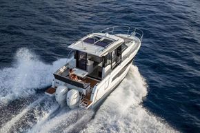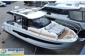 Very high specification Jeanneau Merry Fisher 895 Series 2 - wheelhouse cruiser / fishing boat with twin Yamaha F250 XSB2 - Steer By Wire outboards (white), plus bow thruster and Zipwake automatic trim tabs for great performance, manoeuvrability and control. A fantastic deal with a saving of almost £34,000 on the RRP. Almost £74,000 extras including Trim Level Premiere, Comfort Pack, upgraded Garmin navigation electronics + radar, Fusion Audio, Flexiteek deck and much more! Great for sunny days with U-shape aft sun lounger and sun awning with enclosure canopy and bow sunpad. Equally well equipped for cooler days with large wheelhouse, 2 cabins, carpet, curtains, electric hot water and diesel heating. Delivered to Morgan Marine with full PDI / commissioning / installation and hand over package, 3 piece name set + prepared and antifouled. CE category C for 10 and B for 6. Very high specification 2026 model year Jeanneau Merry Fisher 895 Series 2 on order with the factory and will arrive at Morgan Marine soon. NB - library photos may not reflect specification of boat.